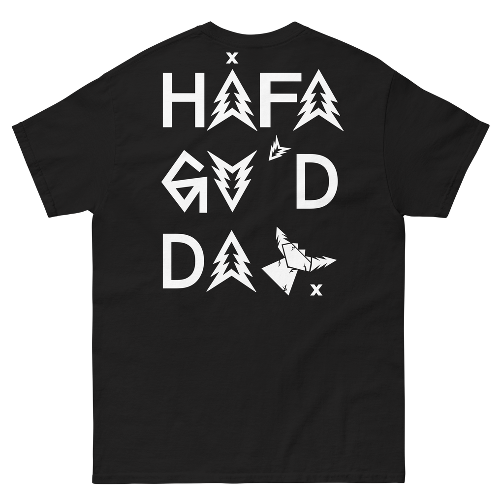 "HAFA GU'D DAY SHAKA" CLASSIC TEE TRUE TO SIZE BLACK WITH WHITE FRONT & BACK PRINTS !FREE SH!PP!NG!